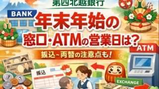 年の瀬が近づくと、毎年気になるのが銀行の年末年始営業ですよね。「いつまでお金が下ろせるの?」「窓口はいつから休みなの?」と不安になる方も多いはず。今回は、三十三銀行の2025年から2026年にかけての年末年始営業について、公式発表をもとに徹...