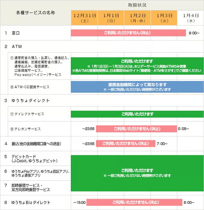 - ゆうちょ銀行ATM提携は1月1日・2日利用不可