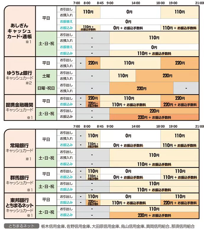 コンビニATMは便利だけど、手数料が足利銀行ATMの2倍の220円。